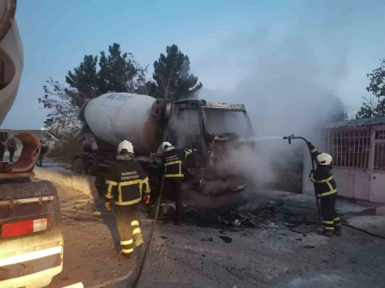 Mardin’in Artuklu ilçesinde seyir halindeki beton mikseri alev alev yandı.