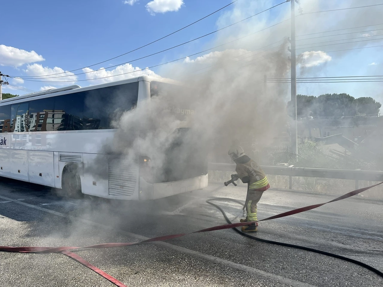 Yangın, saat 16.00 sıralarında İzmir - Ankara D300 Karayolu Jandarma Kavşağı yakınlarında meydana geldi. Edinilen bilgiye göre, İ.P. idaresindeki 42 HJ 777 plakalı, İzmir’den Konya istikametine sefer yapan yolcu otobüsünden seyir halindeyken dumanlar yükselmeye başladı. Durumu fark eden otobüs şoförü, aracı yol kenarına çekerek yolcuları tahliye etti. Motor bölümünde başlayan yangına ilk müdahaleyi çevredeki vatandaşlar yangın tüpleriyle yaptı. İhbar üzerine olay yerine sevk edilen itfaiye ekipleri, yangını kısa sürede kontrol altına alarak söndürdü.