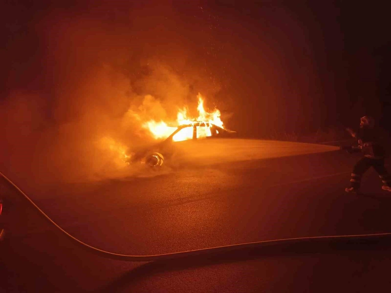 Olay, Bilecik-Söğüt karayolu üzerinde Yeniköy mevkiinde meydana geldi. Edinilen bilgilere göre, plakası öğrenilemeyen bir otomobilde seyir halindeyken yangın çıktı. Henüz belirlenemeyen nedenle çıkan yangın, kısa sürede aracı sardı. İhbar üzerine bölgeye itfaiye ekipleri sevk edildi. Ekiplerin müdahalesi sonucunda yangın söndürülürken, araçta büyük çapta maddi hasar oluştu.