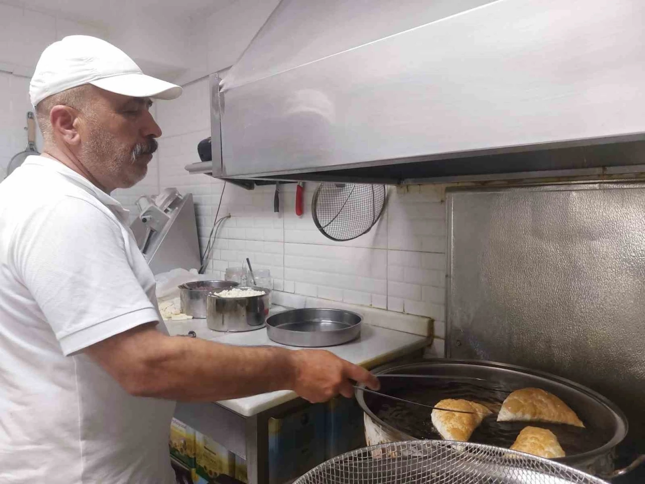Eskişehir’de yaz sıcaklarına rağmen çibörek üretimine devam eden Necati Aslan, sıcak havalarda çalışmanın zor olduğunu, ancak dışarıdan gelen misafirlerin ilgisinin kendilerine moral olduğunu söylüyor.