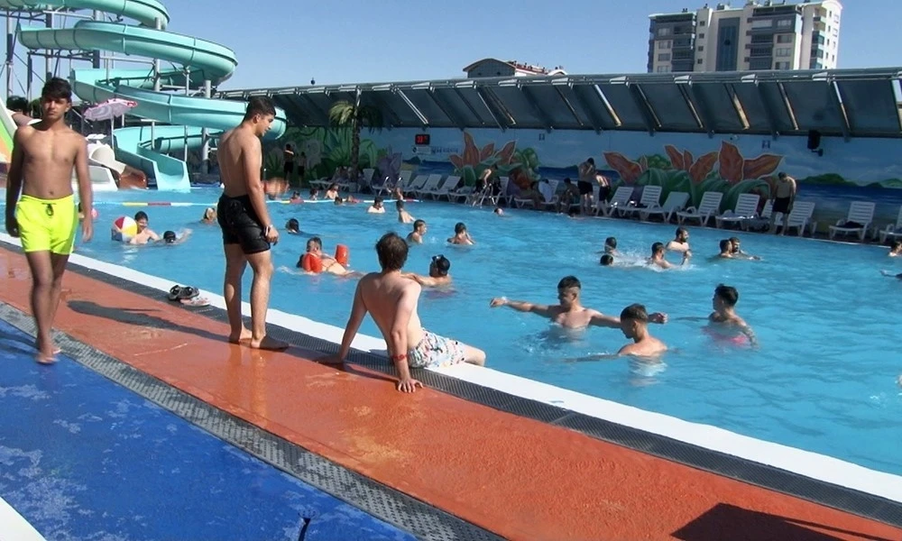 Havuza gelen Şahin Mert Koca, havaların çok sıcak olduğunu belirterek, "Yandık, çareyi havuzda bulduk. Geldik buraya arkadaşlarımızla beraber, yüzüyoruz, kaydıraklardan kayıyoruz" diye konuştu.