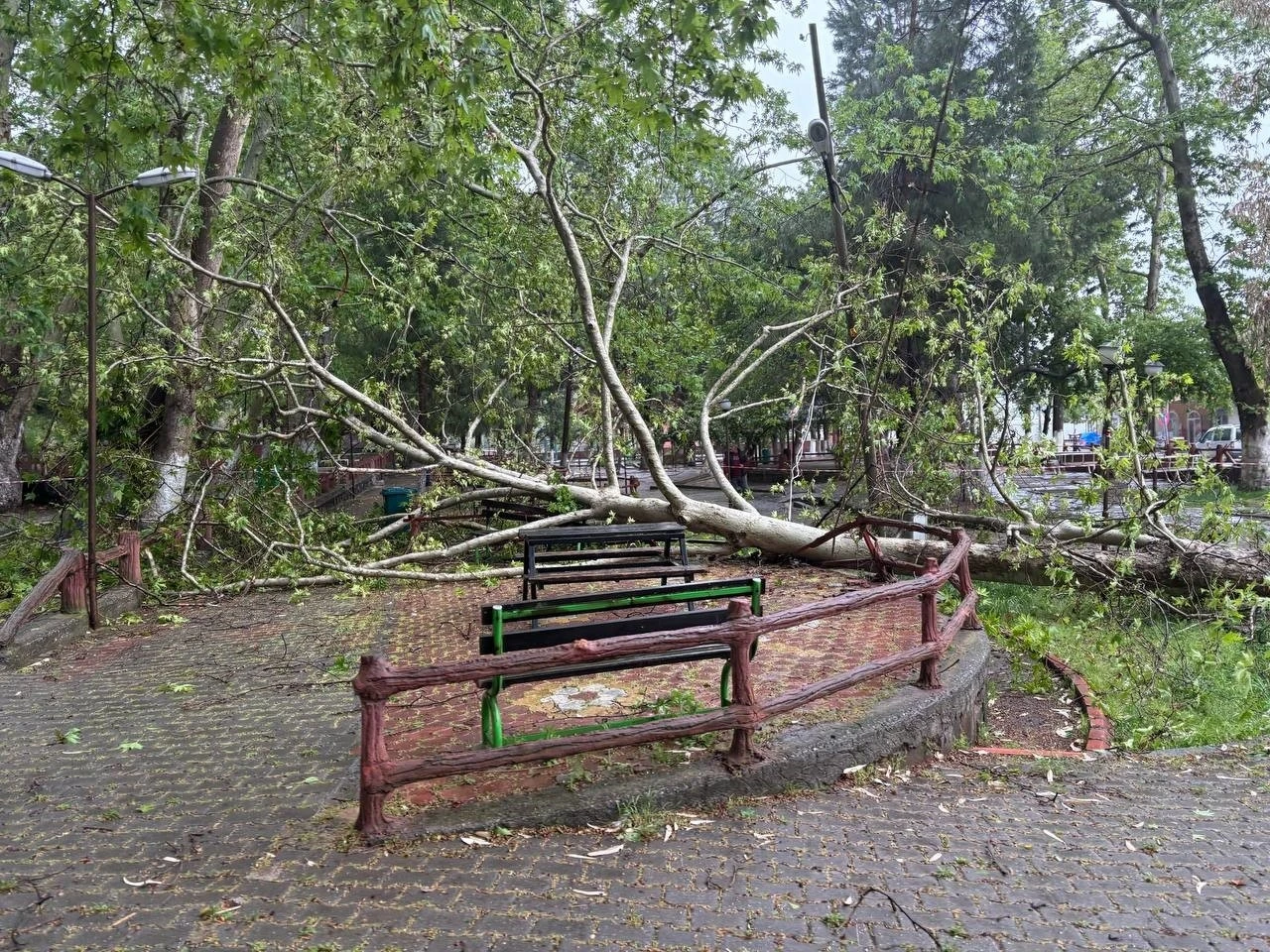 Osmaniye’de şiddetli yağmur ve fırtına nedeniyle mesire alanında bulunan tarihi çınar ağacı gövdesinden kırıldı.