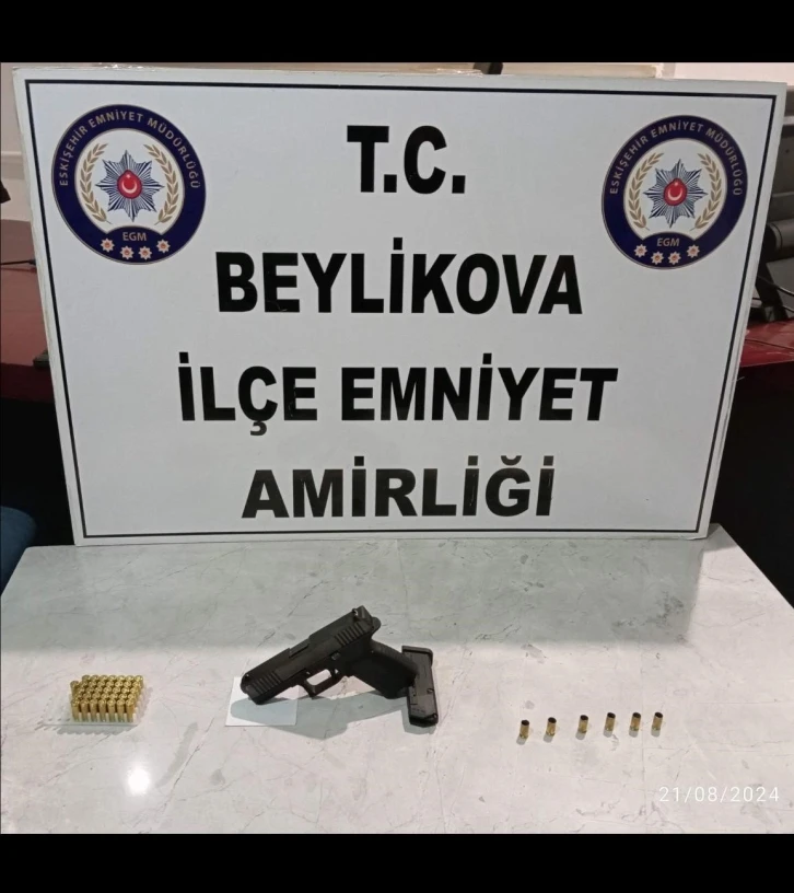 Beylikova İlçe Emniyet Amirliğine yapılan ihbar üzerine harekete geçen ekipler, olay yerindeki çalışmalar neticesinde bir aracı durumundan şüphelenilerek durdurdu. Araçta yapılan incelemelerde; 1 ruhsatsız tabanca, 36 fişek, 6 kovan ele geçirilerek muhafaza altına alınıp, gözaltına alınan şüpheli S.F. adli mercilere sevk edildi.