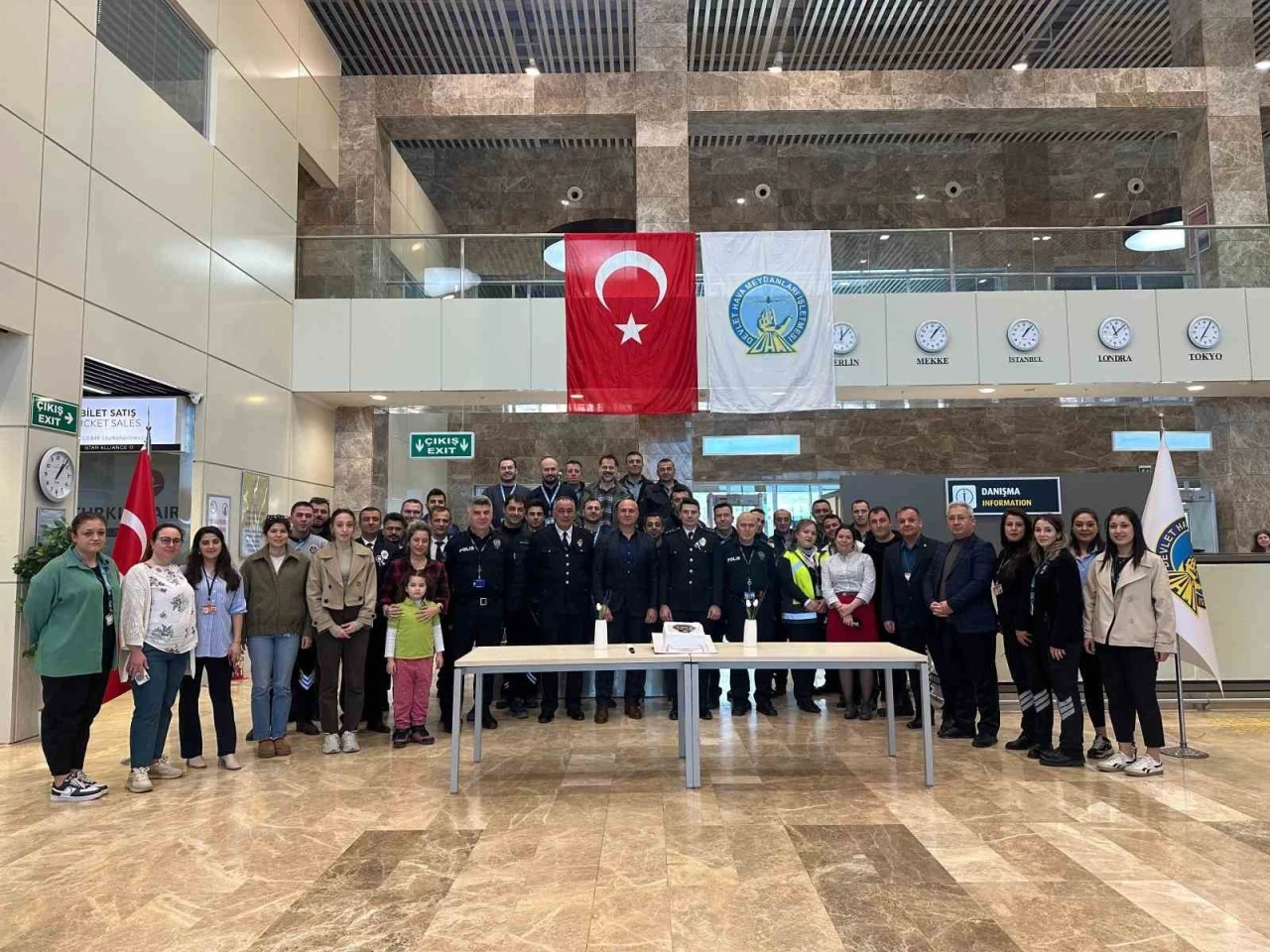 Kutlama programı kapsamında Türk Polis Teşkilatı’nın 180’inci kuruluş yıl dönümüne özel hazırlanan pasta Emniyet mensupları ve havalimanı personelinin katılımıyla kesildi.