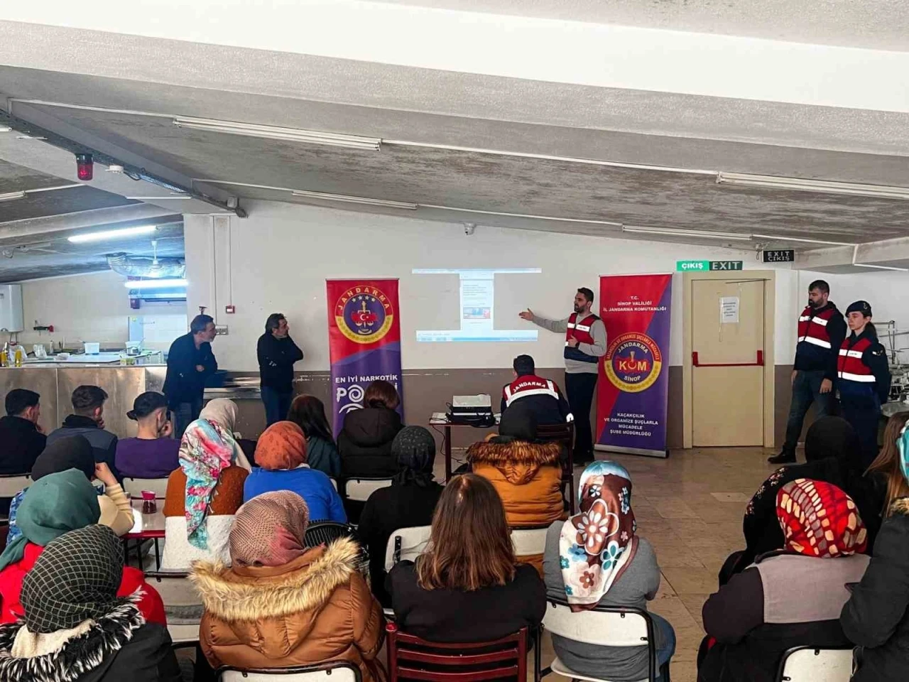 Sinop İl Jandarma Komutanlığı, uyuşturucuyla mücadele kapsamında farkındalık ve bilinçlendirme çalışmalarına devam ediyor. Bu kapsamda, Boyabat ilçesinde bir işletmede düzenlenen eğitim programında 220 anne ve anne adayına, "En İyi Narkotik Polisi Anne" projesi çerçevesinde madde bağımlılığıyla mücadele ve siber farkındalık konularında bilgilendirme yapıldı.
