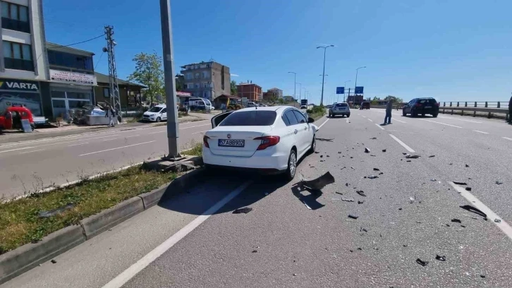 Sinop’ta meydana gelen kazada bir araç, aniden önüne çıkan büyükbaş hayvana çarptı.