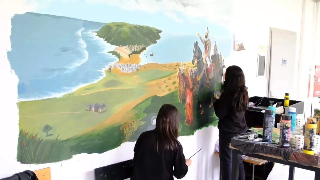 Tarih bilinci ve milli değerlerin genç nesillere aktarılmasını hedefleyen proje kapsamında, sanatçı ressam Ali Rıza Kanaç tarafından hazırlanan ödüllü resim, öğrencilerin katılımıyla okul duvarlarına işleniyor.