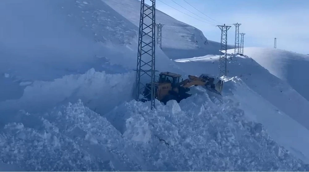 Şırnak’ın Beytüşşebap ilçesinde karla mücadele ekipleri, kar kalınlığının 3 metreyi bulduğu bölgelerde yol açma çalışmalarını sürdürüyor.