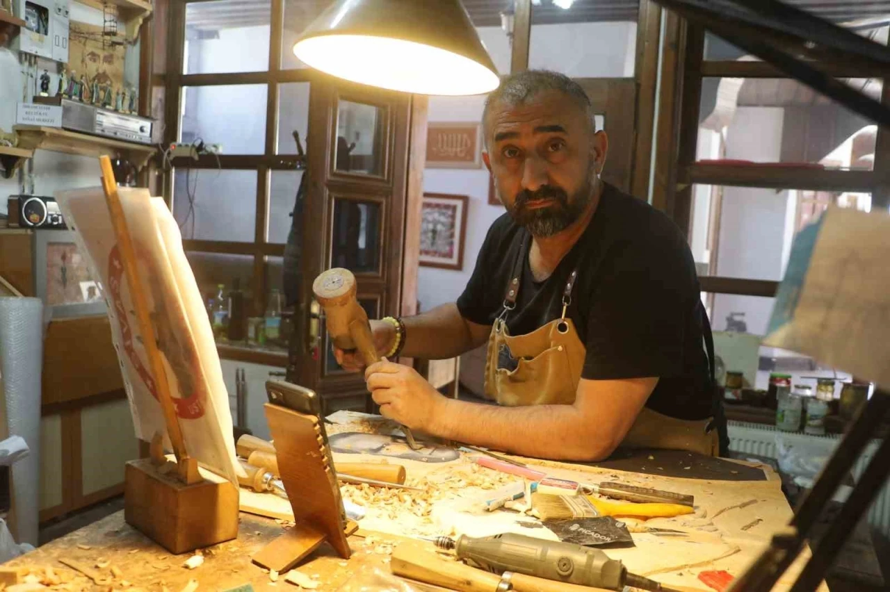 Sivas’ta ahşap oyma ustası Süleyman Daştan, kolay işleme yapılabilmesi nedeniyle yurt dışından getirttiği Afrika kökenli ağaçlara Sivas’ın tarihi motiflerini işliyor.