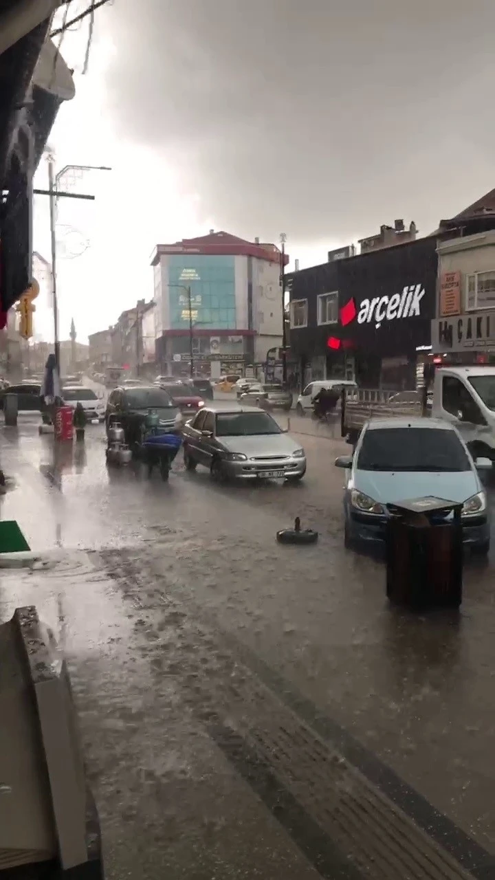 Sivas’ın Şarkışla ilçesinde etkili olan dolu hayatı olumsuz etkilerken, o anlar cep telefonu kamerasına yansıdı.