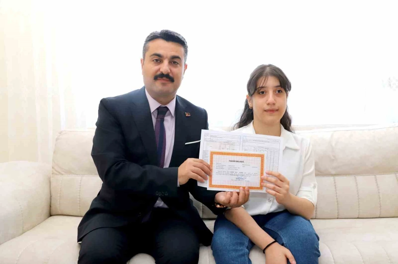 İlk olarak, Özel İdare Ortaokulu 7. sınıf öğrencisi Kader Sıla Durna’yı evinde ziyaret eden Erdoğan 8. sınıfa geçen Durna’ya tebriklerini ileterek karne ve takdir belgesini verdi.