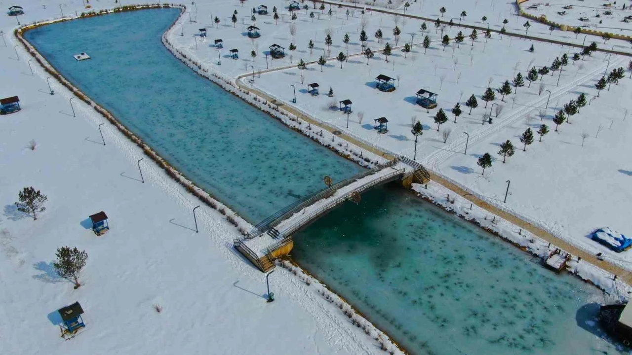 Sibirya soğuklarının etkili olduğu Sivas’ta Cumhuriyet Üniversitesi kampüsünde bulunan yapay gölet buz tuttu.