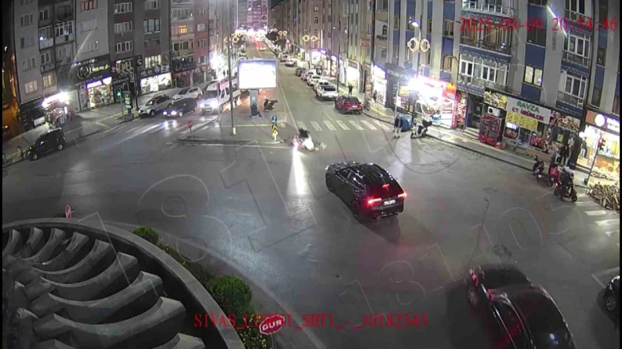 İlk kaza, Sivas Lisesi Kavşağı’nda meydana geldi. Görüntülerde bir otomobilin kavşağa çıktığı ve bu sırada kavşaktan geçmekte olan motosikletle çarpıştığı görüldü. Çarpışmanın etkisiyle motosiklette bulunan iki kişi yere savruldu.