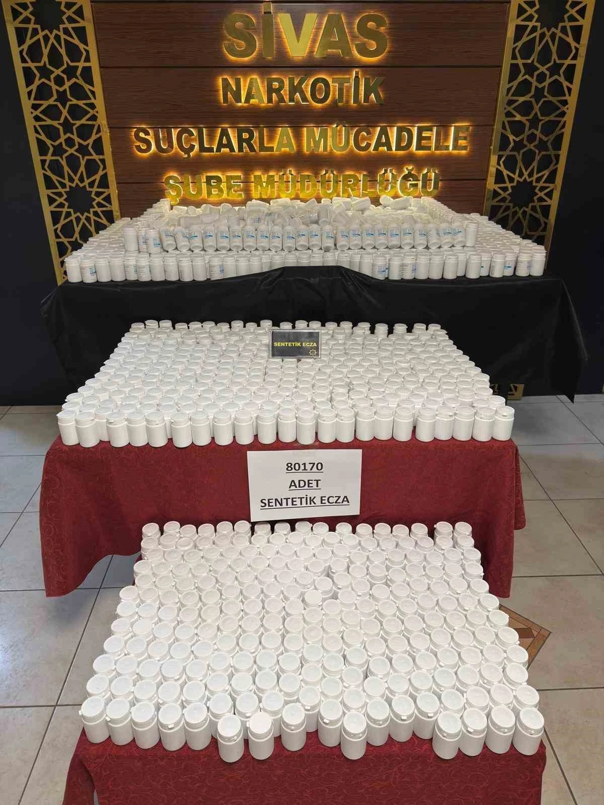 Sivas’ta yılbaşı öncesi narkotik polisinin düzenlediği operasyonda 7 şüpheli yakalandı. Yapılan adli aramalarda 80 bin 170 adet sentetik ecza hapı ve 3,19 gram esrar ele geçirildi. Gözaltına alınan şüphelilerden 3’ü tutuklanarak cezaevine gönderildi.
