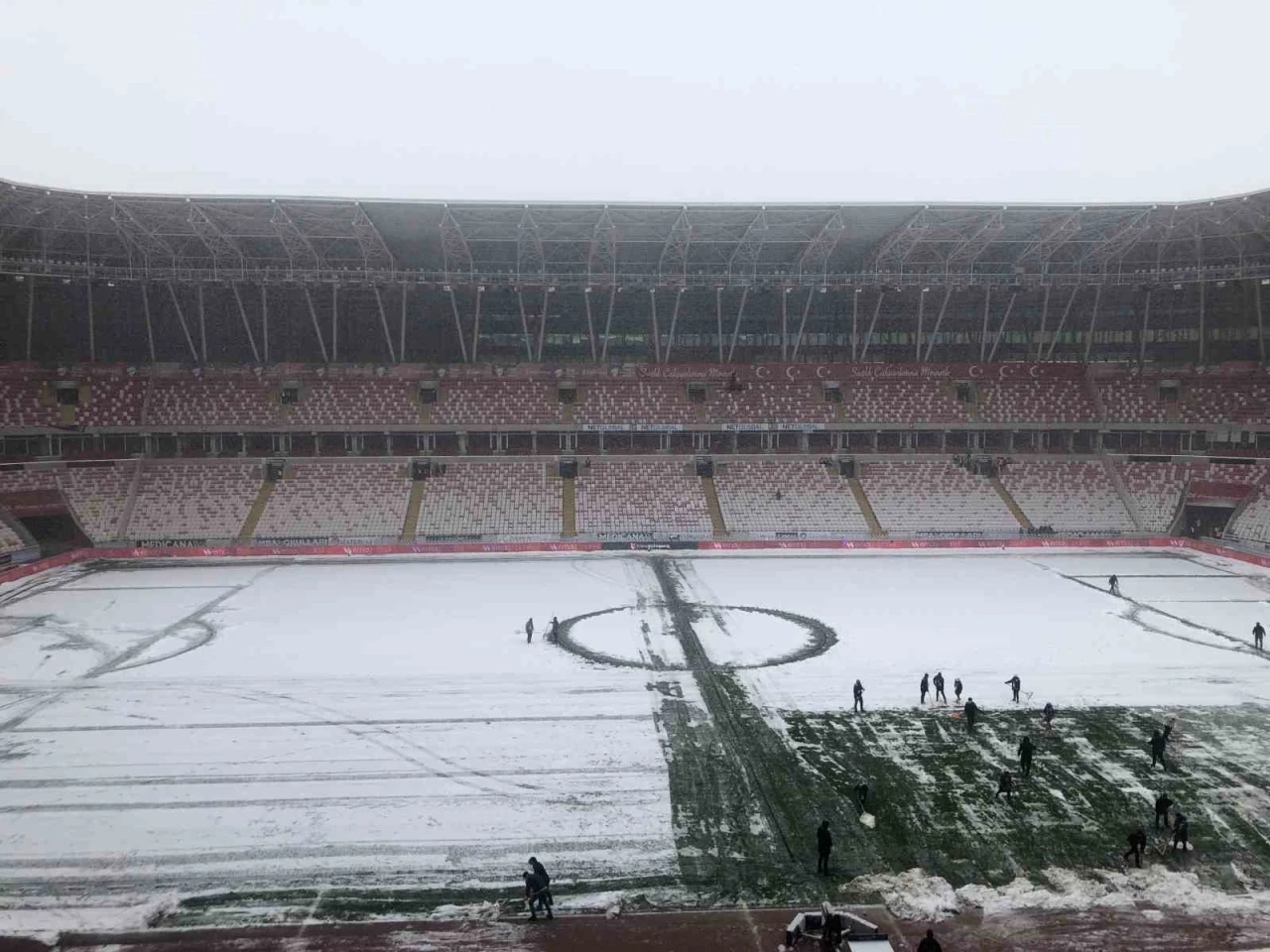 Öte yandan Sivas’ta yoğun kar yağışı devam ederken stadyumda ise kar temizleme çalışmaları sürüyor.