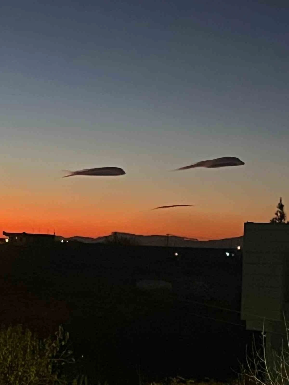 Siverek ilçesi semalarında, bilimsel adı lenticularis olan mercek bulutları görüldü. İlginç şekliyle dikkat çeken bulutları vatandaşlar cep telefonlarıyla kayıt altına aldı.