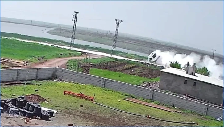 Şanlıurfa’nın Siverek ilçesinde kontrolden çıkan minibüs şarampole düşerek takla attı, o anlar güvenlik kamerasına yansıdı.
