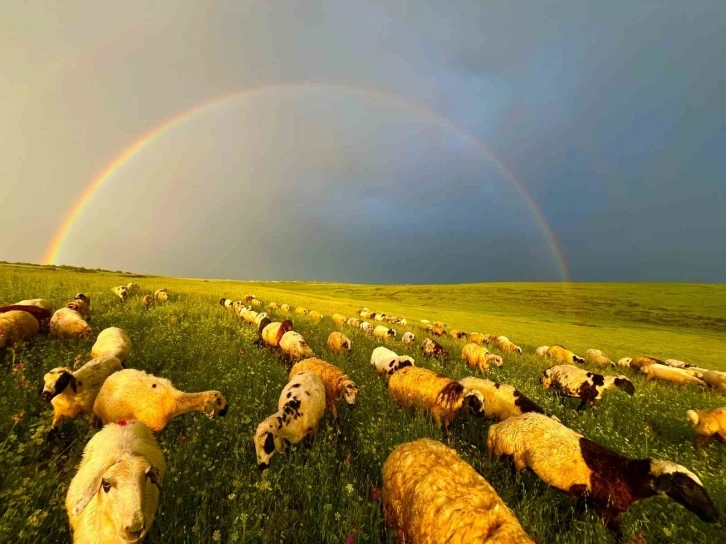 Şanlıurfa’nın Siverek ilçesinde yağmur sonrasında ortaya çıkan gökkuşağı görsel şölen oluşturdu.