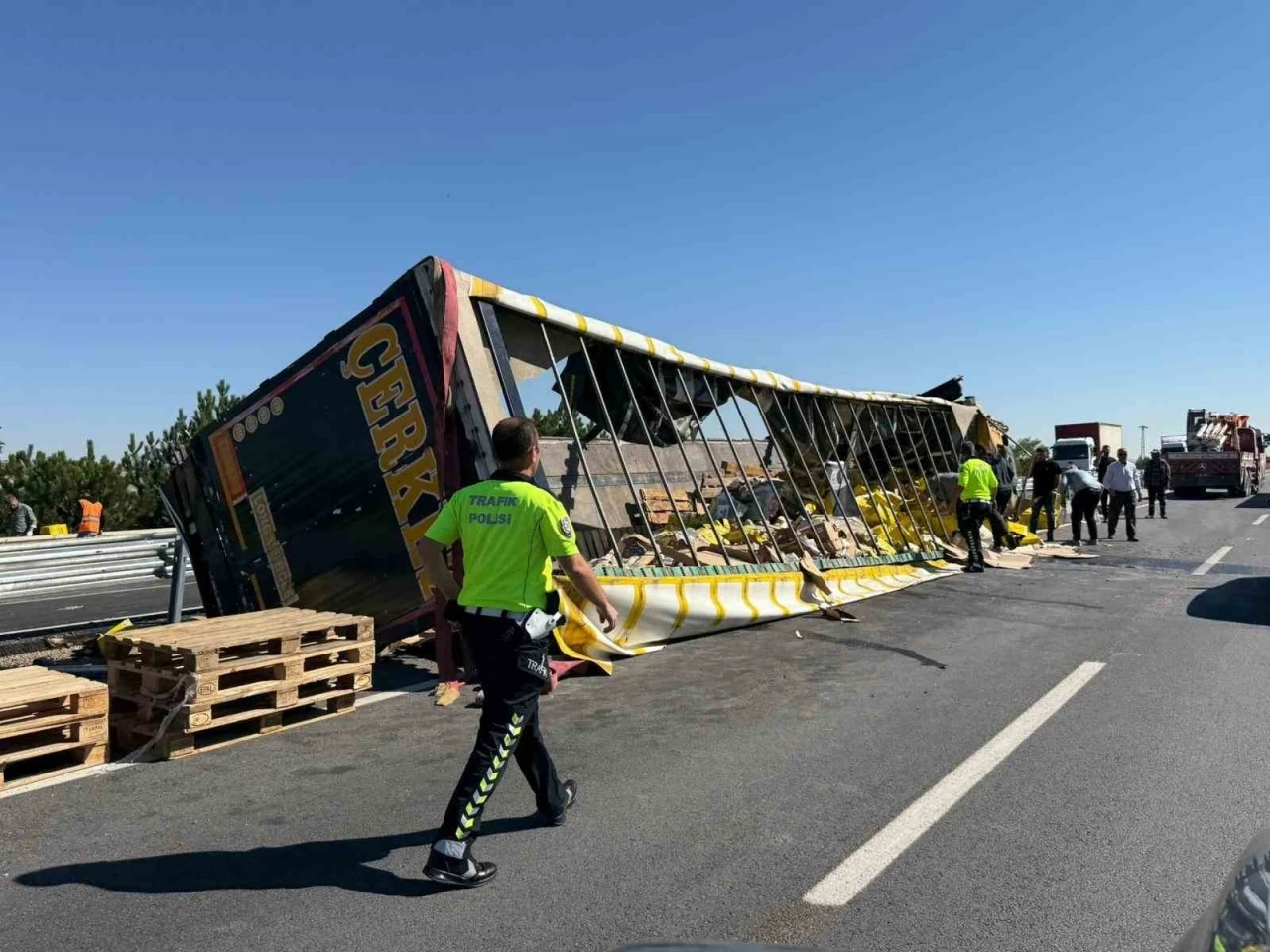 Afyonkarahisar’da sıvı yağ yüklü tır kontrolden çıkarak orta refüje devrildi.