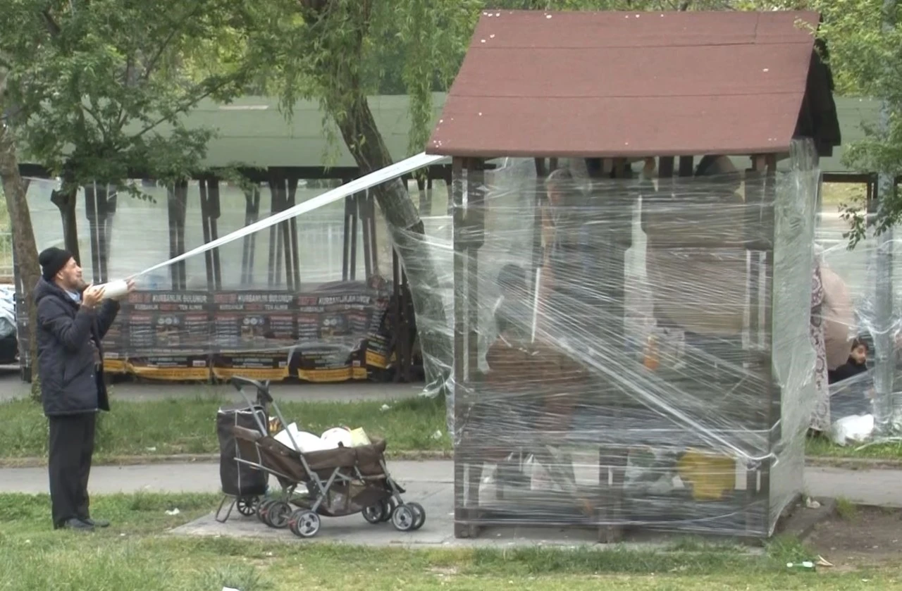 Torunu, çocukları ve geliniyle birlikte parkta uyuyan 70 yaşındaki Sevim Yıldız, "Tüm aile olarak streçle kapladığımız alanda uyuduk. Gece böyle bir çözüm bulabildik. Gece çok üşüdük diyemem ama böbreklerin ağrımış soğuktan. Burası çok kalabalıktı, kimileri hala burada, uyuyor, kahvaltı yapıyor. Bir kısmı da eşyalarını toplayarak ayrılmış. Burada eşyalarımızı bırakacağız, arada eve çıkacağız. Ben biraz önce çıktım çay demleyip geri indim" dedi.