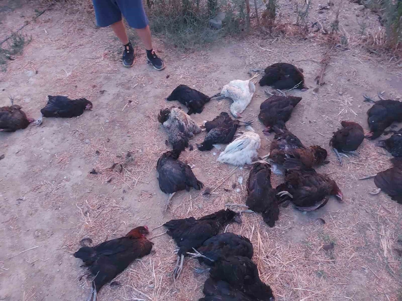 Olay, akşam saatlerinde Dereağzı Mahallesi’nde meydana geldi. Pazara çıkan Sultan Ocakoğlu, akşam eve döndüğünde komşularının bahçeden köpek sesleri geldiğini söylemesi üzerine kümese yöneldi. Ocakoğlu, kümeste gördüğü manzara karşısında şoke oldu. 35 tavuğundan 25’inin yerde telef olduğunu gören Ocakoğlu, olay yerinden kaçan iki sokak köpeğini fark ettiğini belirtti.