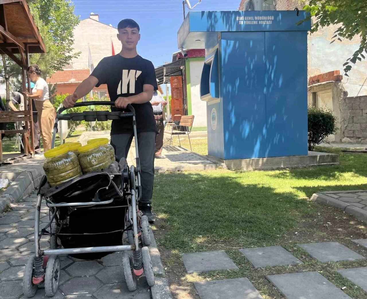 Eskişehir sokaklarında bebek arabasına yüklediği salamura üzüm bağı yaprakları ile dolu bidonları taşıyan 16 yaşındaki Kutsal Yıldızlar, harçlığını çıkarıyor. Üç kilo yaprağın bulunduğu bidonları 350 TL’ye satan küçük çocuk sıcağa rağmen, sokaklarda satış yapmaya devam ediyor. Tek bir mahallede değil kentin birçok noktasını dolaşarak satış yapan Yıldızlar’ın azmi dikkat çekiyor.
