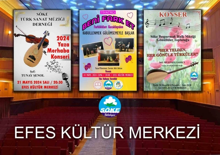 Söke Belediyesi Efes Kültür Merkezi Mayıs ayında üç farklı etkinliğe ev sahipliği yapacak. 21 Mayıs’ta Söke Türk Sanat Müziği Derneği tarafından yaz konseri, 24 Mayıs’ta İlçe Milli Eğitim, Söke Belediyesi ve Kıryarlar Özel Eğitim Okulu işbirliği ile tiyatro gösterimi, 30 Mayıs’ta ise Beşparkmak Türk Halk Müziği Topluluğu konseri Sökelilerle buluşacak. Şefliğini Tunay Şenol’un yaptığı Söke Türk Sanat Müziği Derneği Korosu, yaz konserini 21 Mayıs 2024 Salı günü gerçekleştirecek. Konser saat 20.30’da başlayacak. İçinde bulunduğumuz Engelliler Haftası nedeniyle, farkındalık oluşturmak üzere gerçekleştirilecek tiyatro gösterimi 24 Mayıs 2024 Cuma günü saat 20.00’de gerçekleşecek. Sermin Atik Arıkan’ın yazıp, yönettiği ‘Beni Fark Et’ adlı oyun izleyicilerle buluşacak. Diğer taraftan 30 Mayıs 2024 Perşembe günü, Beşparkmak Türk Halk Müziği Topluluğu sevilen eserleri seslendirecek. Şefliğini Mustafa Yarıcı’nın yaptığı koro ‘Her telden, her gönüle türküler’ adlı konseriyle Sökelilerle buluşacak. Etkinlikler ücretsiz olarak sunulurken; tüm Söke halkı etkinliklere davet edildi. Söke Belediye Başkanı Dr. Mustafa İberya Arıkan tarafından Söke’ye kazandırılan Efes Kültür Merkezi, Ramazan ayı içinde çok sayıda etkinliğe ev sahipliği yapmıştı. Geçtiğimiz günlerde fiyat tarifesi de meclisten geçmesinin ardından kimlik kazanan Efes Kültür Merkezi önümüzdeki dönemde de Söke’nin sosyal ve kültürel hayatına renk katmaya devam edecek.