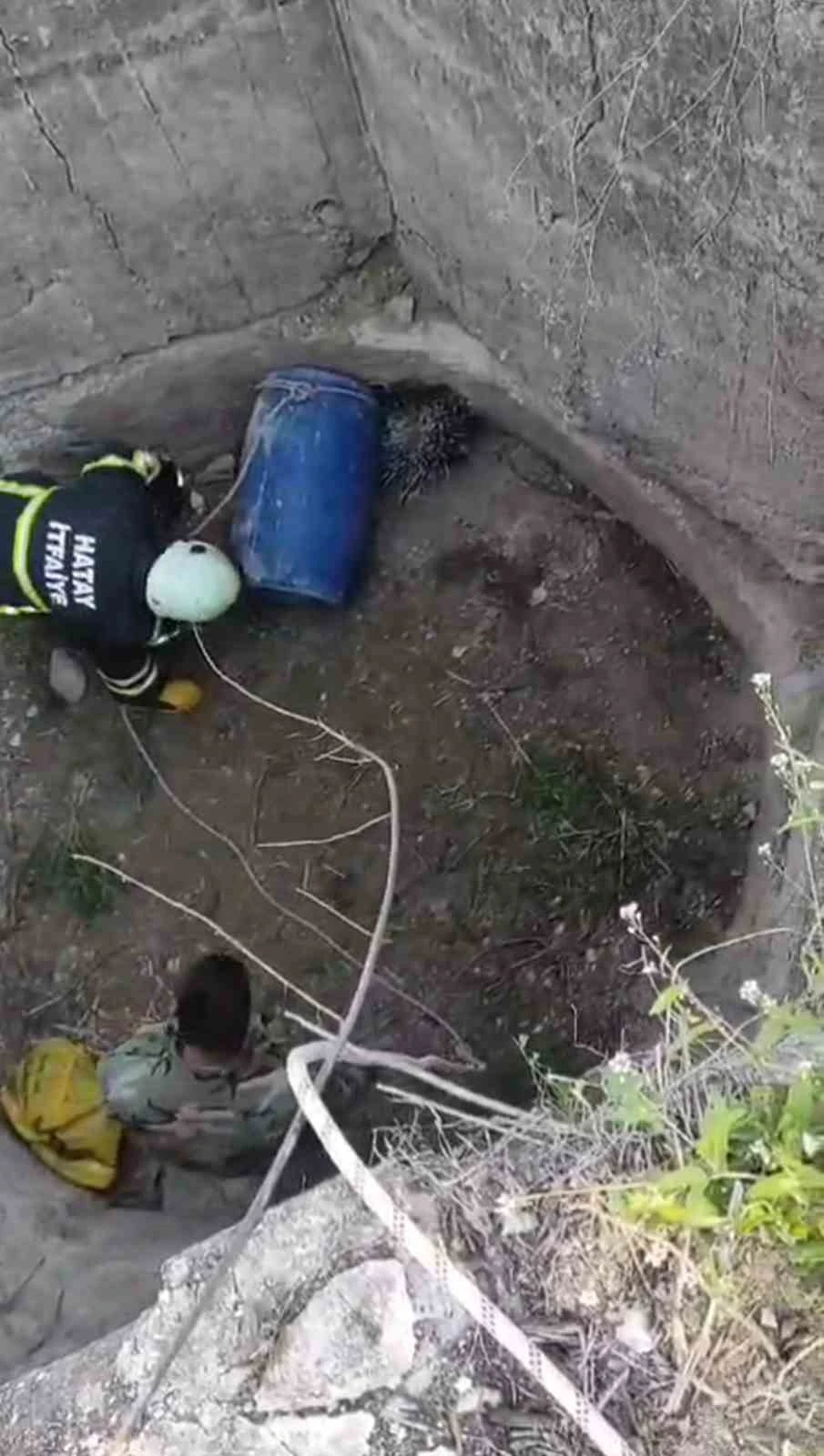 Hatay’da su kuyusuna düşerek mahsur kalan oklu kirpi, itfaiye ekipleri tarafından kurtarıldı.