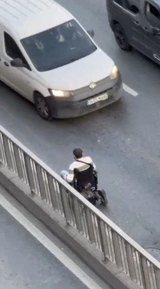 Sultangazi’de engelli bir vatandaş, tekerlekli sandalyesiyle Eski Edirne Asfaltı üzerinde trafiğe girerek ters yönde ilerledi. Hem kendi hayatını hem de sürücülerin can güvenliğinin tehlikeye atıldığı anlar cep telefonu kamerasına yansıdı.