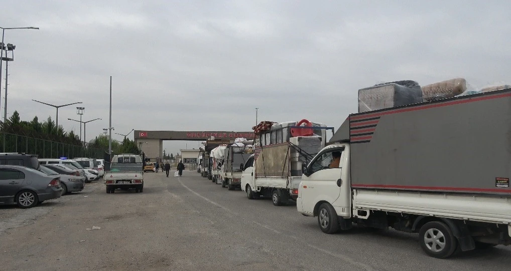 Yanlarına aldıkları eşyalarıyla birlikte dönüş yolcuğuna geçen Suriyeliler, Kilis Öncüpınar Sınır Kapısı’nda yoğunluk oluşturdu.