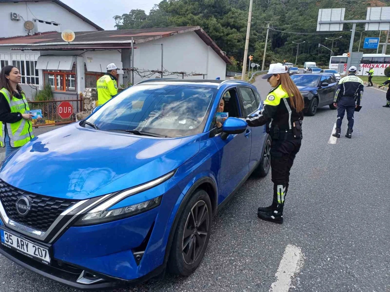 Sürücü ve yolculara "yolun sonu bayram olsun" sloganıyla trafik kurallarını içeren 2 bin adet el broşürü dağıtan ekipler, trafik kurallarına uyulmasının hayat kurtardığına dikkat çekti. Denetimler sırasında vatandaşların bayramını da kutlayan trafik polisleri, bayram boyunca denetimlerin aralıksız olarak devam edeceğini bildirdi. Marmaris polisi, vatandaşların huzurlu ve güvenli bir bayram geçirmesi için çalışmalarını sürdürüyor.