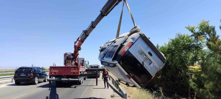 Afyonkarahisar’da kontrolden çıkarak takla atıp ağaçlık alana giren hafif ticari araçta 3 kişi yaralandı.