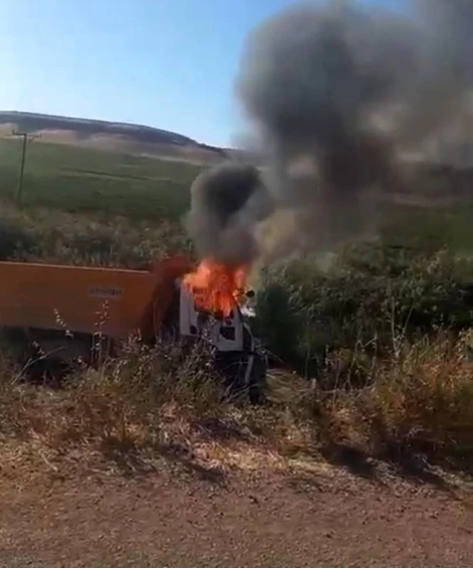 Diyarbakır’ın Çınar ilçesinde devrilen kamyonun sürücüsü yanarak hayatını kaybetti.