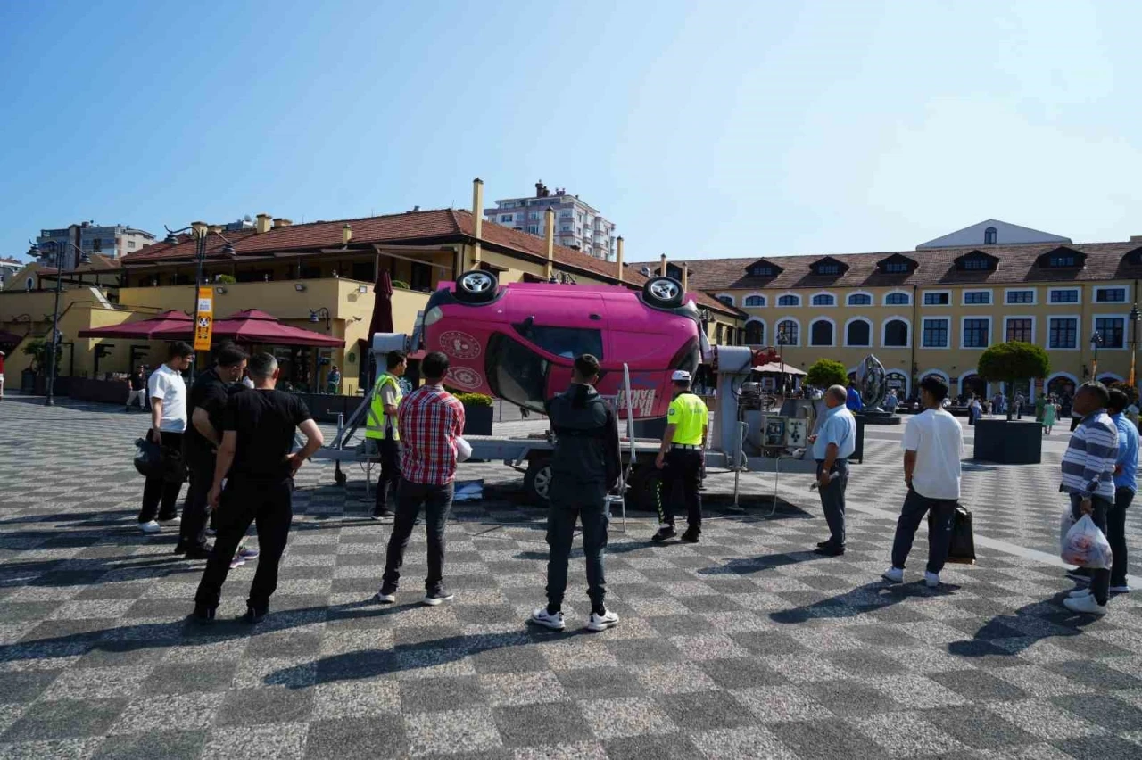 Samsun’da emniyet kemeri takmadan araç kullanmanın sonuçları, takla atan simülasyon aracıyla çocuklara uygulamalı olarak gösterildi. Yapılan faaliyette trafik kurallarına uymanın hayati önem taşıdığına dikkat çekildi.