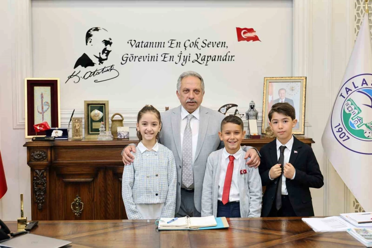 Talas Belediye Başkanı Mustafa Yalçın, 23 Nisan Ulusal Egemenlik ve Çocuk Bayramı dolayısıyla başkanlık koltuğunu minik misafirlere emanet etti. TOKİ Levent Çetinkaya İlkokulu öğrencilerini makamında ağırlayan Başkan Yalçın, geleceğin teminatı olan çocuklarla keyifli bir gün geçirdi.