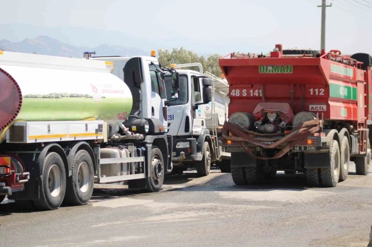 Aydın’ın Germencik ilçesi Gümüşyeniköy’de dün öğlen saatlerinde başlayıp rüzgarın da etkisi ile büyüyerek Söke ilçesi Argavlı Mahallesi’ne kadar yayılan orman yangını büyük ölçüde kontrol altına alınırken, dünden bu yana tam mesai yapan itfaiye ve orman araçlarına tankerlerle su takviyesi yapılıyor. Germencik ilçesine bağlı Gümüşyeniköy mevkiindeki zirai alanda henüz bilinmeyen bir nedenle dün başlayan yangın sabah saatlerine kadar devam etti. Şiddetli rüzgarın etkisi ile Gümüşyeni Mahallesi’nden Söke Argavlı Mahallesi’ne kadar yayılan yangın, gece saatlerinde rüzgarın yeniden yön değiştirmesi ile Gümüşdağ mevkiine geçti. Hava karardıktan sonra gece görüşlü helikopterlerin havadan müdahalesini sürdürdüğü yangında, sabah havanın aydınlanması ile birlikte bölgedeki tüm helikopter ve uçaklar Gümüşdağ bölgesindeki yangına sevk edildi. Orman Bölge Müdürlüğü ekiplerinin yanı sıra Aydın Büyükşehir Belediyesi başta olmak üzere tüm çevre ilçelerin ve çeşitli özel kurumların da söndürme çalışmalarına destek verdiği yangında, şu an itibariyle Gümüşdağ bölgesinde çeşitli bölgelerde zaman zaman yükselen dumanlara uçak ve helikopterler anında müdahale ediyor. Yaklaşık 22 saattir tam mesai yapan itfaiye ve orman araçları da dönüşümlü olarak konuşlandırma merkezine gelerek, su takviyesi yapıyor. Gümüşköy Mahallesi’nde konuşlandırılan tankerden su takviyesini tamamlayan araçlar yeniden Gümüşdağ bölgesine çıkarak söndürme ve soğutma çalışmalarına karadan devam ediyor.