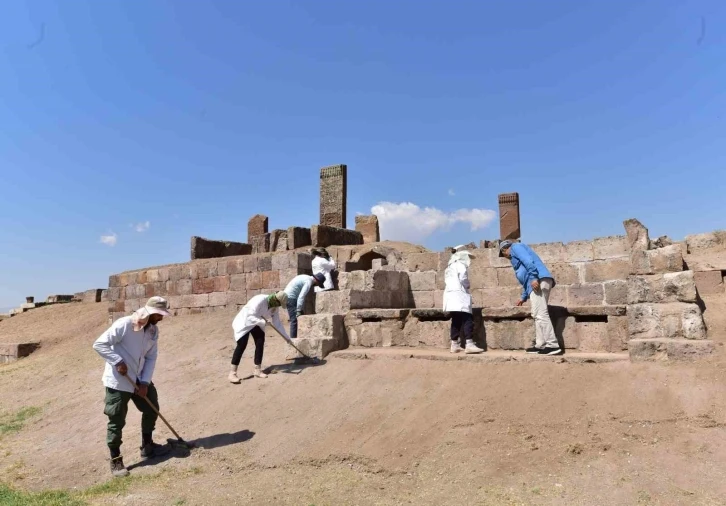 Bitlis’in Ahlat ilçesinde bulunan dünyanın en büyük Türk İslam mezarlığı olma özelliğini taşıyan Selçuklu Meydan Mezarlığı’nda yürütülen kazı ve restorasyon çalışmalarında, Birinci Dünya Savaşı’nda oluşan tahribatın izleri siliniyor.