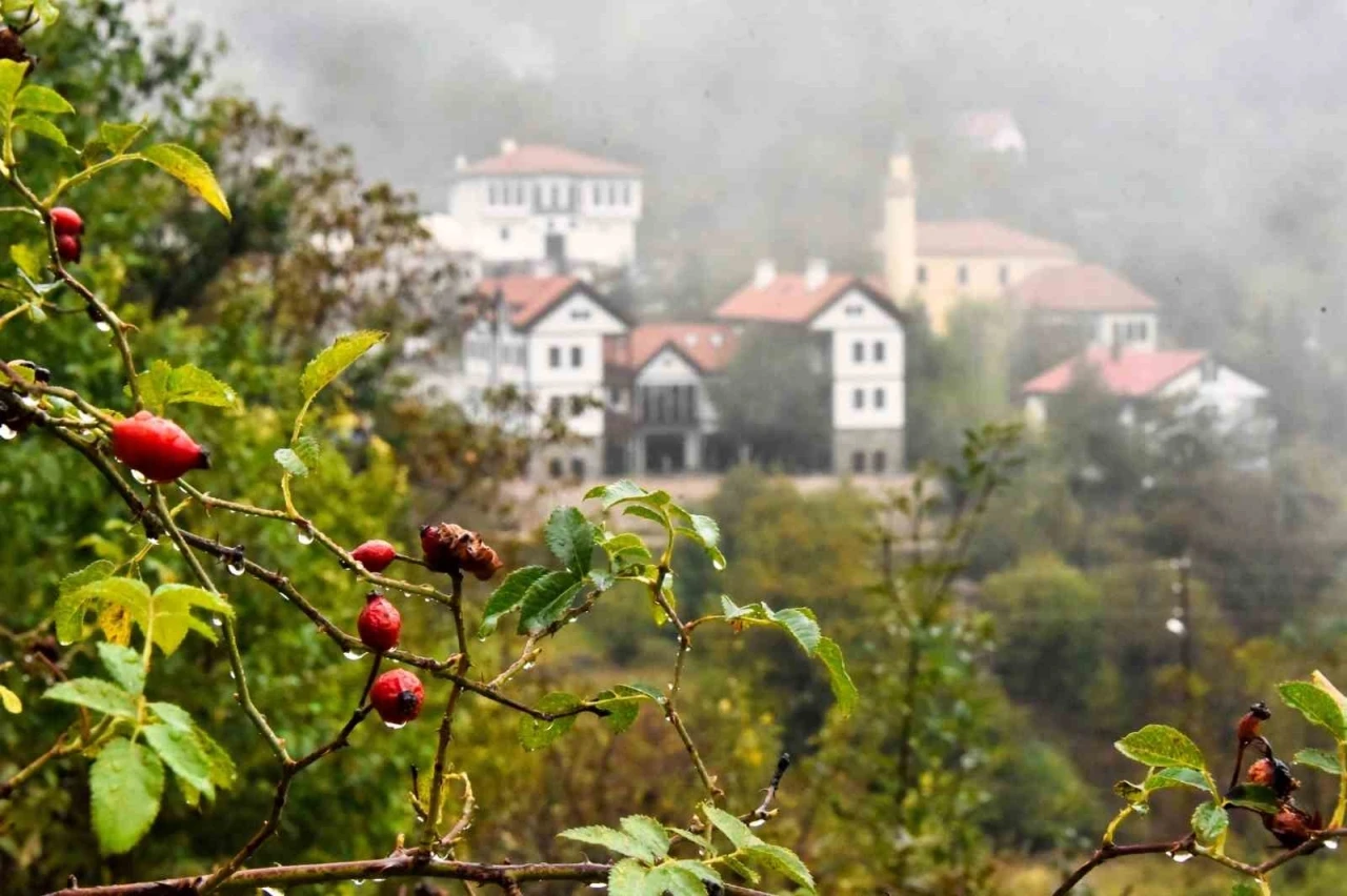 Sonbaharın etkisiyle göz alıcı manzaralar sunmaya başlayan tarihi mahallede sarı ve kırmızı yapraklar, yağmurun ardından yükselen sisle birleşince adeta bir kartpostal görüntüsü ortaya çıktı.