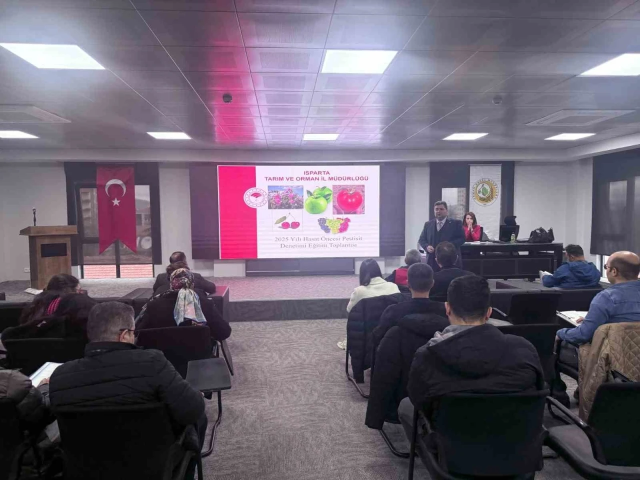 Isparta İlçe Tarım ve Orman Müdürlüğü, Hasat Öncesi Pestisit Denetimi Programı kapsamında teknik personele eğitim toplantısı düzenledi. Toplantıda, bitki koruma ürünlerinin etiket bilgilerine uygun kullanımı, numune alma ve analiz değerlendirme yöntemleri anlatıldı. Ayrıca, üreticilerin cezai işlemle karşılaşmamaları için zirai ilaçları doğru kullanmaları gerektiği vurgulandı.