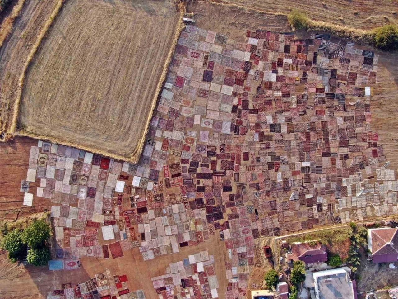Türkiye’nin dört bir yanından ve yurt dışından gelen 15 bine yakın el dokuması halı ve kilim, restore edilip mikroplardan arındırılmak üzere Antalya’nın Döşemealtı ilçesindeki buğday tarlalarına seriliyor. Arazi sahipleri, tarlaya serilen serilen milyonluk halıları hırsızlık, yağmur ve yabani hayvanların zarar vermesine karşı korumak için sabahlara kadar nöbet tutuyor.