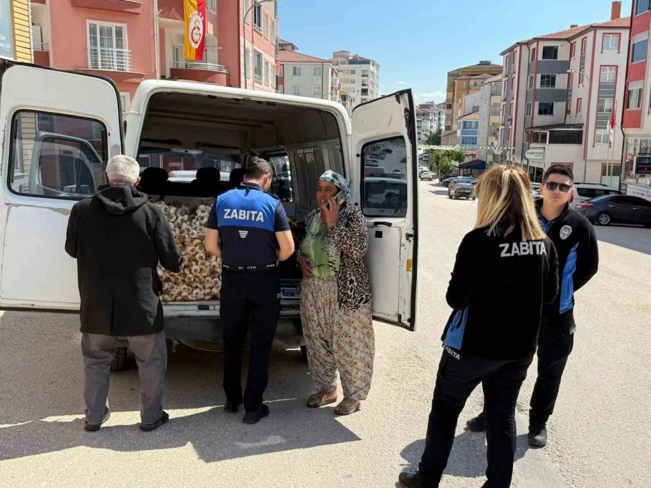 Bilecik merkez Bahçelievler Mahallesi’nde devriye gezen zabıta ekipleri bir şahsın 20 ZF 529 plakalı ticari araca taktığı hoparlör sistemiyle insanları rahatsız edecek şekilde satış yaptığını gördü. Zabıta Amiri Özgür Özmen ve ekibi, şahsa sattıkları sarımsağın faturasını sordu. Faturasını gösteremeyen satıcı Hüseyin Akça’nın ürünlerini inceleyen ekipler, ’Taşköprü Sarımsağı’ diye satılan sarımsağın Çin’den ithal edildiğini öğrendi. Satıcı "Biz de Taşköprü diye alıyoruz’ diye konuşurken ürünlerine el konuldu. Hüseyin Akça’nın tüm mallarına el konulurken, Uşak’tan geldiği öğrenilen şahsa Kabahatler Kanunu’na göre ceza yazıldı.
