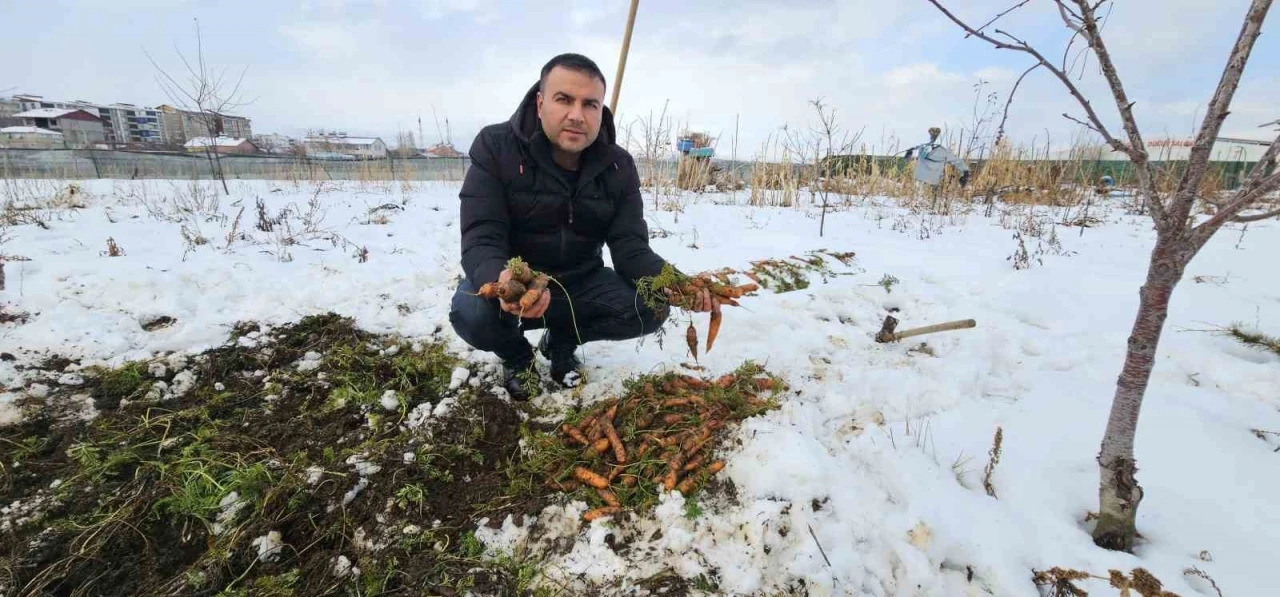 Bitlis’in Tatvan ilçesinde, karlar altında kalan havuçların hasadı yapıldı.