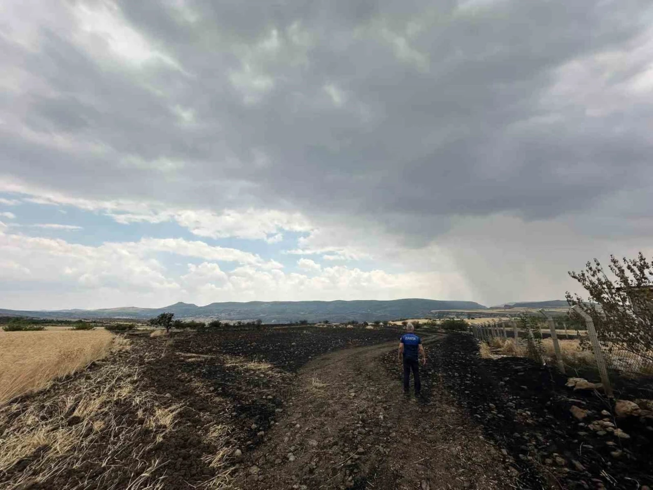 Ankara’nın Güdül ilçesinde bulunan tavuk çiftliğinde yakılan ateş, yanında bulunan ekili tarlaya sıçradı.