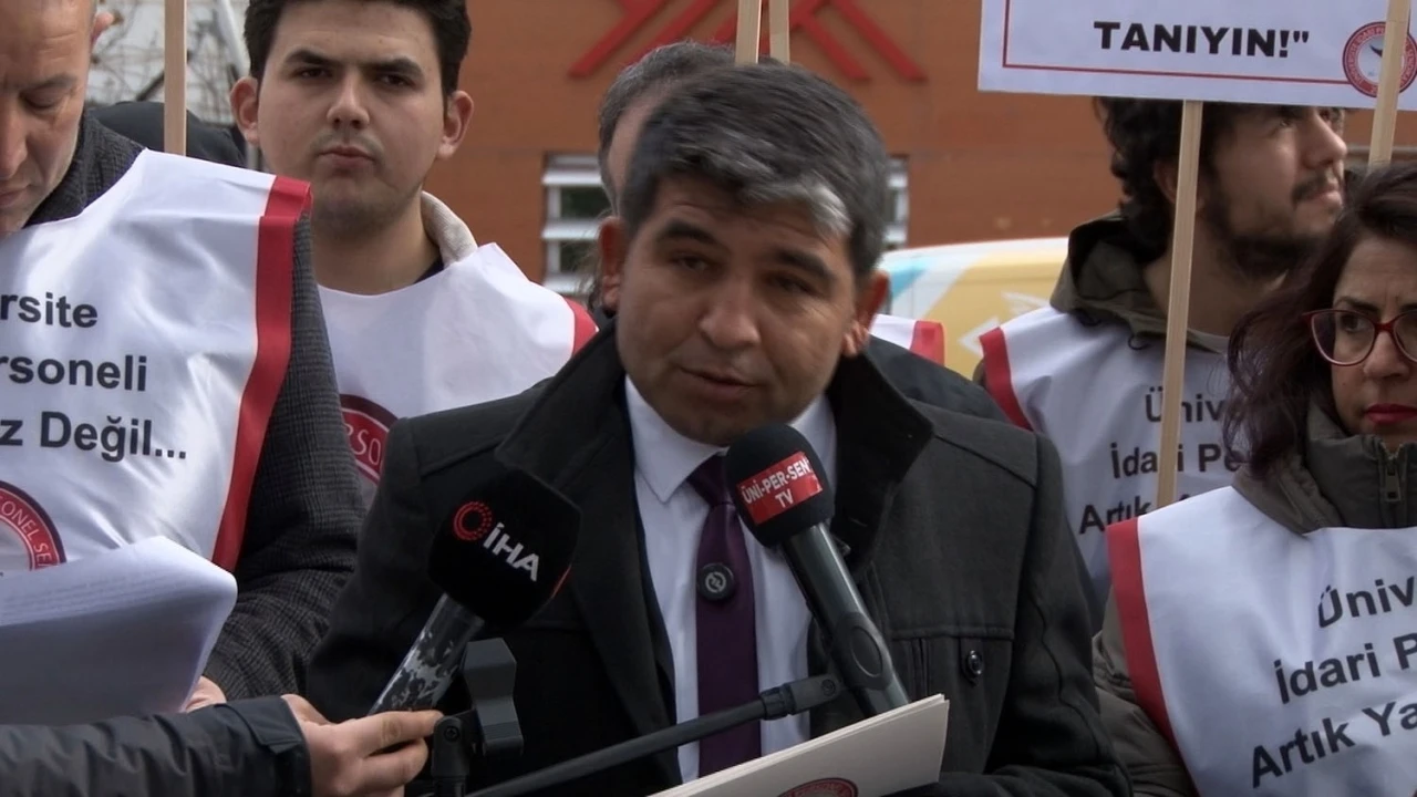 ÜNİPERSEN, üniversitelerde idari kadrolarda çalışan memurların başta tayin hakkı olmak üzere diğer memur haklarından da yararlanabilmesi talebiyle YÖK önünde eylem düzenledi. YÖK binası önünde pankart açıp slogan atan sendika üyeleri taleplerini dile getirdi. ÜNİPERSEN Genel Başkanı İbrahim Güzel yaptığı basın açıklamasında, "Bizler, üniversitelerde 657 sayılı Devlet Memurları Kanunu’na tabi çalışan devlet memurlarıyız. Devlet memurlarının en doğal hakkı olan tayin hakkı için buradayız. Bugün tüm üniversite önlerinde ve burada YÖK önünde bir kez daha ses yükselterek, hem devlet memuru olmanın getirdiği hakları hem de üniversite personeli olmanın getirdiği hakları almak için toplandık. Bilindiği üzere 7. dönem toplu sözleşmede üniversite idari personelinin tayin sorununun çözümü için çalışma yapılması kararı alınmıştı. Yükseköğretim Kurulu da konuya ilişkin 2024 yılı Şubat ayında üniversitelerden talep toplayarak, hazırlık çalışmasına başlandığını bildirmişti. Aradan geçen 1 yıllık sürede ’Taslak çalışmayı yaptık, Cumhurbaşkanlığına gönderdik’ demenin ötesine gidilmedi" şeklinde konuştu.