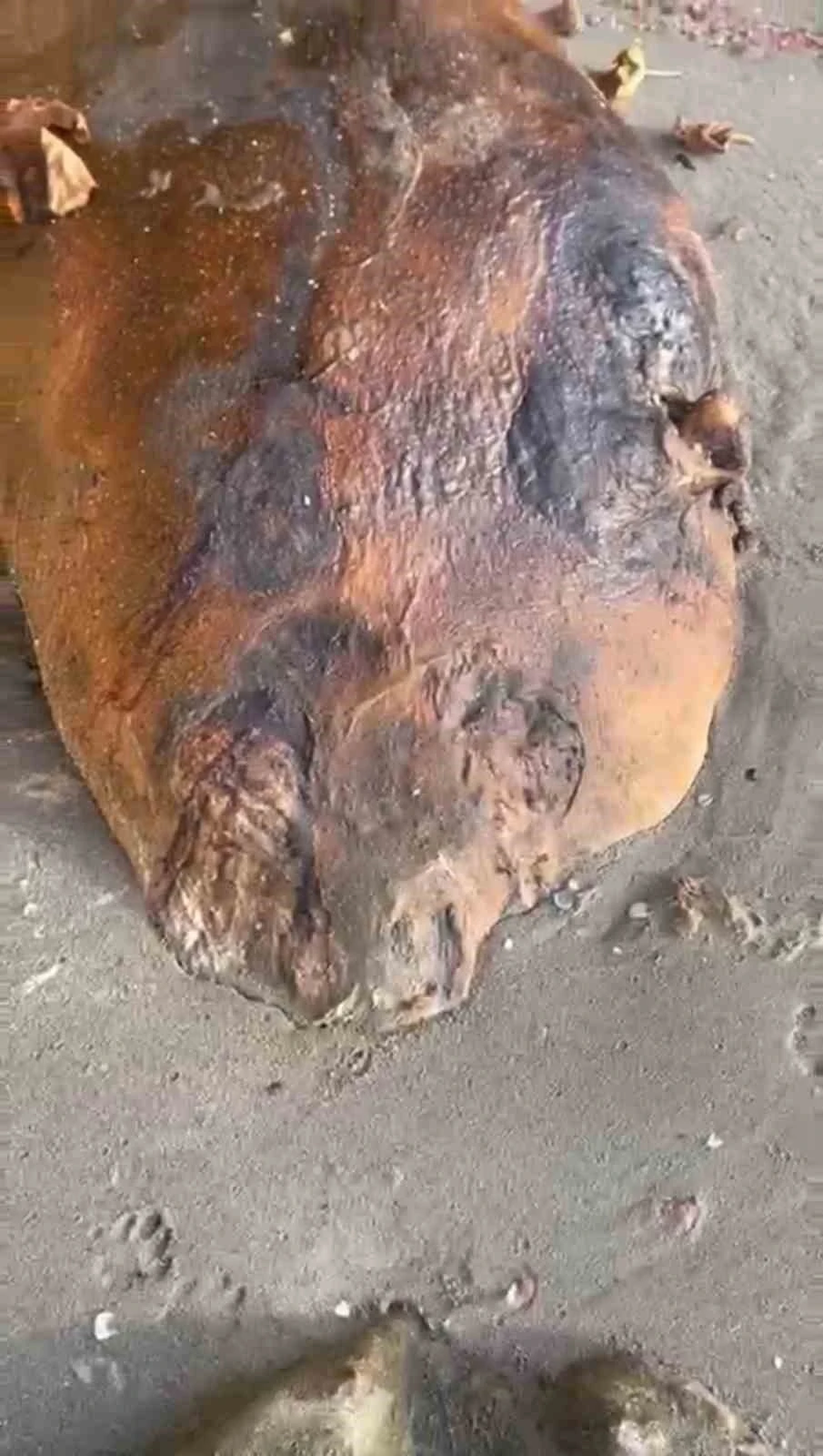 Tekirdağ’ın Süleymanpaşa ilçesi Beyazköy sahilinde kıyıya vuran ve çürümeye başlayan deniz canlısı bulundu.