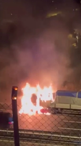 TEM Otoyolu’nun Kocaeli geçişinde seyir halindeki tırın kupası alev alev yandı. İtfaiye ekiplerinin müdahalesi sonucu söndürülen yangında, tırın kupası kullanılamaz hale geldi.