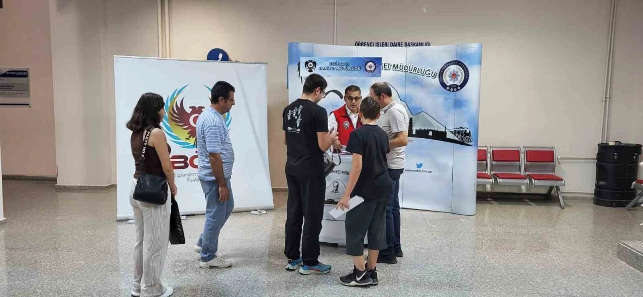Polis ekipleri, Erzincan Binali Yıldırım Üniversitesi’ne yeni kayıt yaptıran ve eğitim-öğretim faaliyetlerine devam etmekte olan öğrencilere yönelik bilgilendirme faaliyetleri düzenledi. Bu kapsamda öğrencilere terör örgütlerinin söz konusu faaliyetlerini önlemek, gençlerin ve ailelerin yeni bir şehre geldikleri ilk andan itibaren kendilerini güvende hissetmelerini sağlamak, öğrencilerin illegal oluşumlar tarafından yanlış yönlendirilmesini engellemek amacıyla bilgilendirme yapan ekipler ardından üniversiteli gençlere broşür dağıttı.