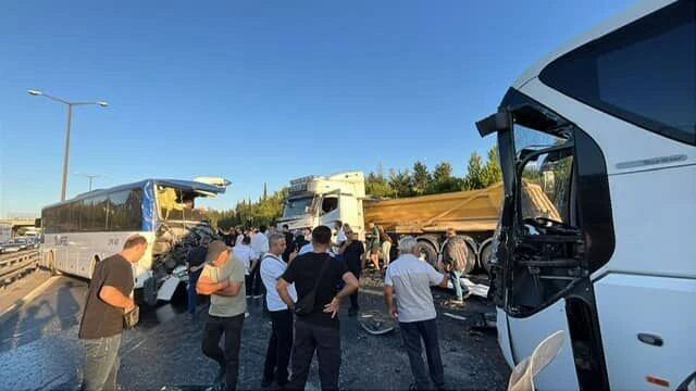 Edinilen bilgilere göre, olay, TEM Otoyolu Edirne istikameti Halkalı mevkiinde yaşandı. Hafriyat kamyonu ve 2 otobüsün karıştığı kazada adeta can pazarı yaşandı. Kazada 1 kişi hayatını kaybederken, 16 kişi yaralandı. Kaza nedeniyle Edirne istikameti trafiğe kapatılırken, olay yerine çok sayıda sağlık ekibi ve polis sevk edildi.
