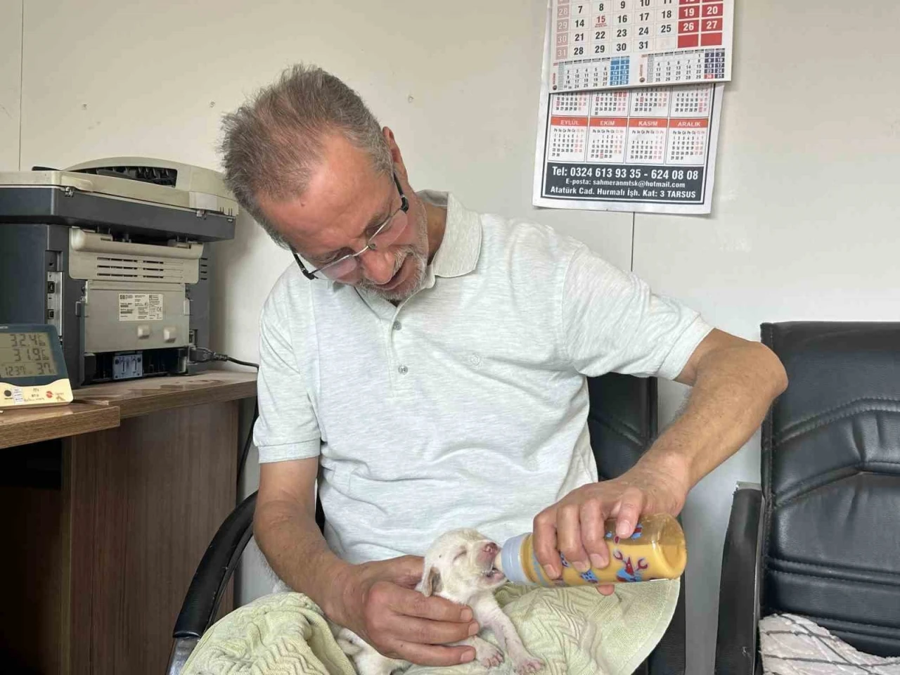 Mersin’in Tarsus ilçesinde tescilli ırk olan Çatalburun köpeği bir batında 13 yavru dünyaya getirdi. Veteriner hekim Müslüm Kestek, yavruların hayata tutunabilmesi için kendi elleriyle besliyor.