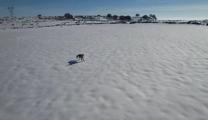 Siverek’e bağlı Beşyamaç kırsal mahallesinde etkili olan kar yağışı sonrası karda ilerlemekte zorlanan bir tilki, bir vatandaş tarafından havadan görüntülendi. Dronu fark eden tilki, önce kısa süre durarak şaşkın bakışlarla dronu inceledi, ardından panikleyerek kaçmaya başladı.